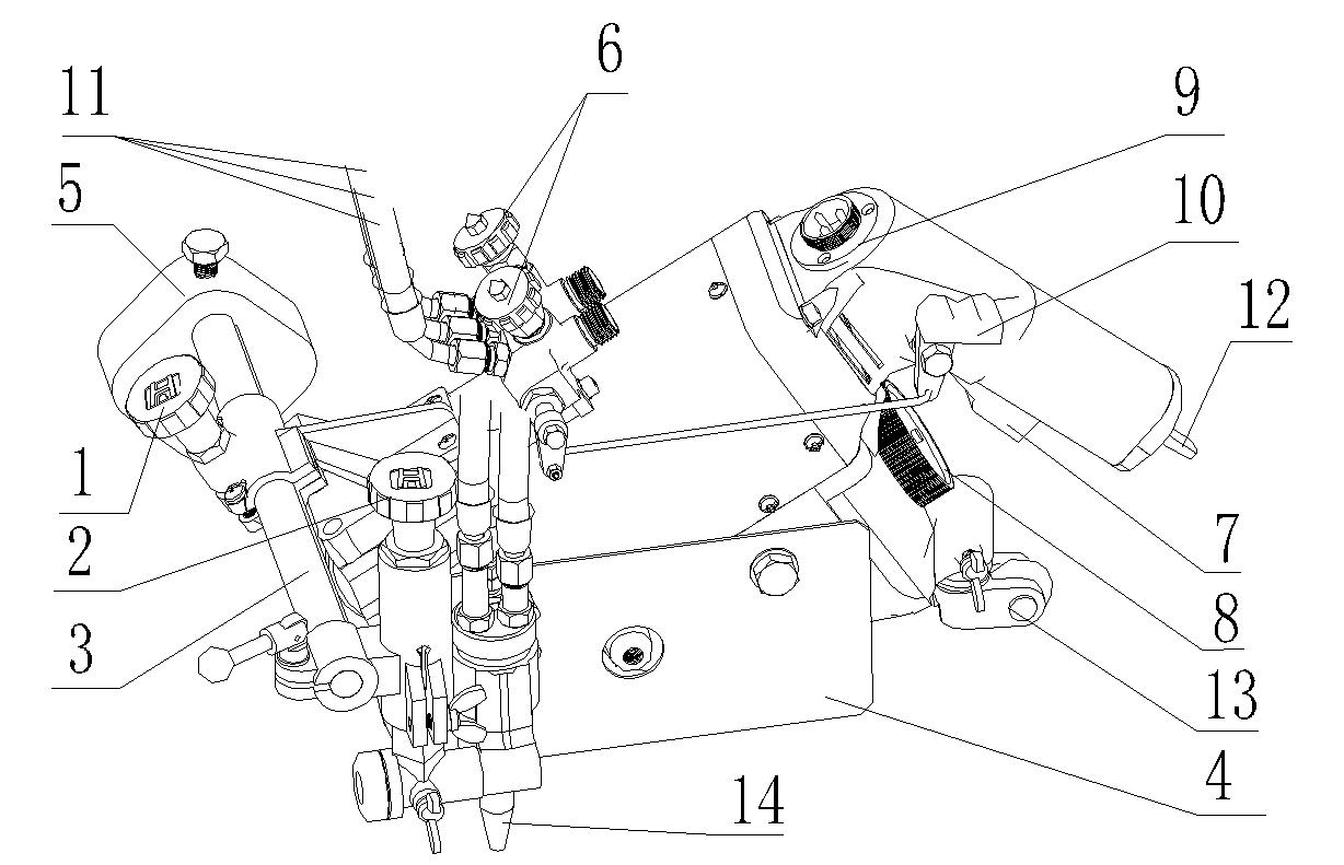 旋轉(zhuǎn)手輪時(shí),割炬向下或向上移動(dòng)。 |