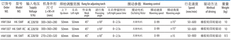HK-5WT 擺動(dòng)式焊接小車是自動(dòng)裝置,一次焊接可以獲得較寬焊縫。擺動(dòng)速度,擺動(dòng)角度,中心偏移位置和左右停留時(shí)間均可調(diào)整。適合各種不同規(guī)格的焊道,手柄為磁控式,移動(dòng)此手柄可以部分的減少磁力,便于清理鐵質(zhì)垃圾和移動(dòng)小車。小車安裝有感應(yīng)停止開關(guān),焊接結(jié)束后小車可以自動(dòng)停止,便于一個(gè)工人同時(shí)操縱多臺(tái)設(shè)備。安裝有永久磁鐵與平面導(dǎo)軌,避免小車脫離焊接線的現(xiàn)象。