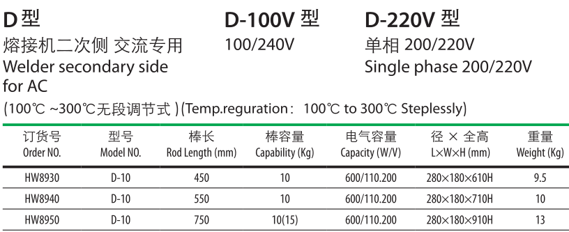 D型熔接機二次側交流專用。