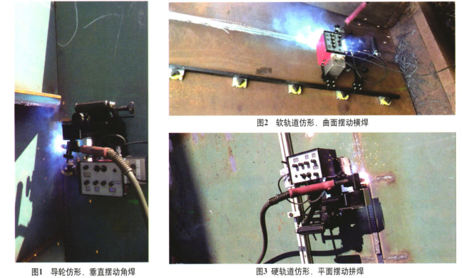 根據(jù)客戶要求及我們對(duì)船廠現(xiàn)場(chǎng)的實(shí)地考察,作出了如下改進(jìn):(1)一機(jī)多用要實(shí)現(xiàn)客戶的一機(jī)多用要求,需對(duì)設(shè)備的自重、吸附力及仿形能力作相應(yīng)的設(shè)計(jì)改進(jìn)。第一,對(duì)設(shè)備行走模塊進(jìn)行了重新設(shè)計(jì)以減輕自重。①車體材料為壓鑄鋁合金,結(jié)構(gòu)上采用薄壁加強(qiáng)肋設(shè)計(jì),模具化生產(chǎn),輕便耐用。⑦車體重心重新進(jìn)行了優(yōu)化布局,減少外力力矩。第二,吸附裝置采用了永磁吸附方式。①選用高性能永磁材料。②采用軟磁磁軛,使高性能磁體工作于最大磁能積工作點(diǎn),減少吸附裝置自重的同時(shí)極大地提升設(shè)備的吸附力。第三,采用導(dǎo)輪結(jié)合軟、硬軌道的綜合仿形方式。使設(shè)備能很好地適應(yīng)平直及帶曲率焊道的焊接。具體焊接實(shí)現(xiàn)如圖l一圖3所示。(2)整機(jī)4 000h的使用壽命 設(shè)備各模塊中對(duì)壽命影響最大的是焊接擺動(dòng)器,而我公司常規(guī)的擺動(dòng)功能模塊主要有:①基于有刷電動(dòng)機(jī)的焊接擺動(dòng)器。其特點(diǎn)是控制線路簡(jiǎn)單、價(jià)格便宜,但其存在控制精度低且壽命短,額定使用壽命只有2 000h,期間需更換擺動(dòng)電動(dòng)機(jī)以延長(zhǎng)使用壽命。②基于BLDC電動(dòng)機(jī)的焊接擺動(dòng)器。其特點(diǎn)是控制線路較復(fù)雜、控制精度較高、使用壽命長(zhǎng)(理論壽命可達(dá)10 000h以上),但其存在無(wú)法實(shí)現(xiàn)運(yùn)動(dòng)的絕對(duì)坐標(biāo)控制。③基于伺服電動(dòng)機(jī)的焊接擺動(dòng)器。其特點(diǎn)是使用.廳命長(zhǎng)、控制flj度j;‘j兒¨J‘吱現(xiàn)運(yùn)動(dòng)的絕對(duì)坐標(biāo)控制,但其存在價(jià)格高昂、控制線路復(fù)雜的缺點(diǎn)。綜合考慮效率質(zhì)量、弱化焊工技能的要求,且本案例中不需進(jìn)行運(yùn)動(dòng)的絕對(duì)坐標(biāo)控制,決定選用基于B LDC電動(dòng)機(jī)的鐘擺焊接擺動(dòng)器模塊。